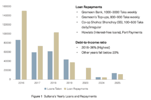 As observed in Figure 1, Sultana demonstrates exceptional debt clearance. The data shows high repayment volumes and consistent debt closure, with repayments often structured on a weekly and monthly basis. Notably, towards the end of 2025, she is primarily debt-free.